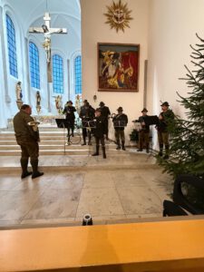 Der Gottesdienst wurde von Pater Shaju geleitet und von Generaloberin Schwester M. Gabriele Konrad begleitet. Die Jagdhornbläsergruppe des Vereins umrahmte die Messe musikalisch mit Stücken wie der Fürstenberg-Fanfare, der Hegewaldfanfare, der Hymne an St. Hubertus sowie „Großer Gott, wir loben Dich“. Pater Shaju zeigte sich von der Darbietung beeindruckt und lobte insbesondere die Wirkung der Jagdhörner in der Kirche.